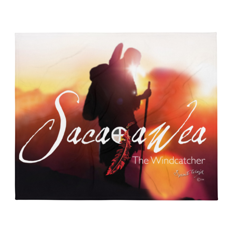 This beautiful throw is 50"X 60" and displays the Official movie logo for Sacajawea, The Windcatcher. The artwork was created by Marcia K. Moore, a renowned concept artist.